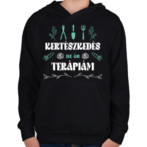 1 kép PRINTFASHION Kertészkedés a terápiám - Gyerek kapucnis pulóver - Fekete