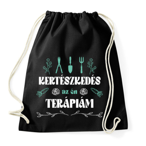 1 kép PRINTFASHION Kertészkedés a terápiám - Sportzsák, Tornazsák - Fekete