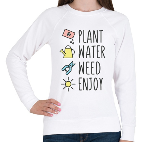 1 kép PRINTFASHION Kertészkedés - Ültesd locsold élvezd - Női pulóver - Fehér