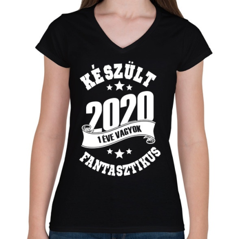 1 kép PRINTFASHION Készült 2020 - 1 éve vagyok fantasztikus - Női V-nyakú póló - Fekete