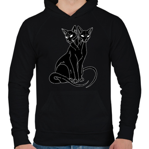 1 kép PRINTFASHION Két fejű cica - Férfi kapucnis pulóver - Fekete