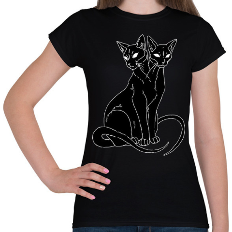 1 kép PRINTFASHION Két fejű cica - Női póló - Fekete