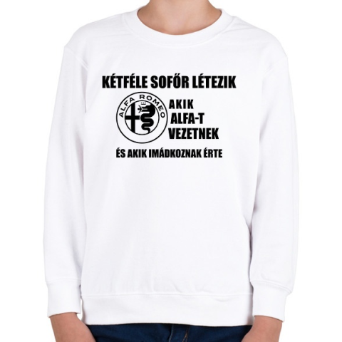 1 kép PRINTFASHION Kétféle Alfa Sofőr - Gyerek pulóver - Fehér