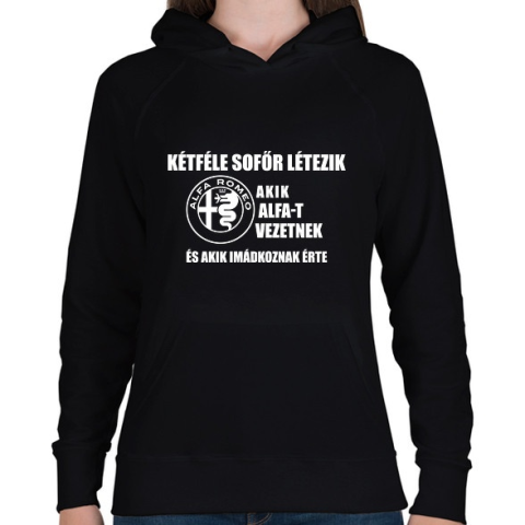 1 kép PRINTFASHION Kétféle Alfa Sofőr - Női kapucnis pulóver - Fekete