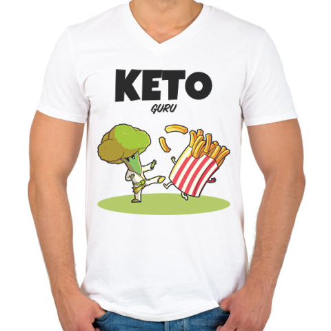 1 kép PRINTFASHION KETOGURU - Férfi V-nyakú póló - Fehér