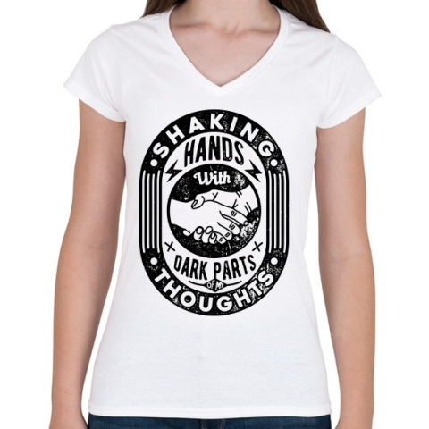 1 kép PRINTFASHION Kézfogás - Női V-nyakú póló - Fehér