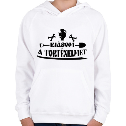 1 kép PRINTFASHION Kiásom a történelmet - Gyerek kapucnis pulóver - Fehér