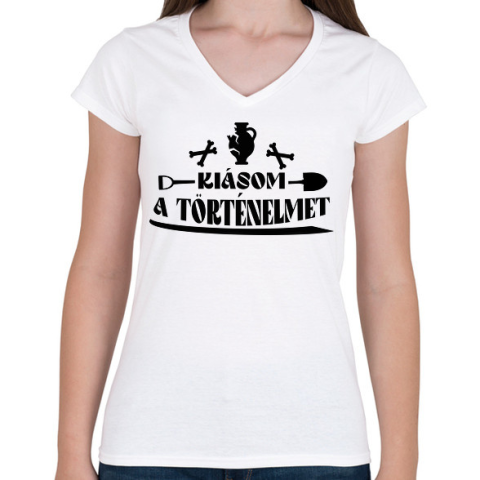 1 kép PRINTFASHION Kiásom a történelmet - Női V-nyakú póló - Fehér