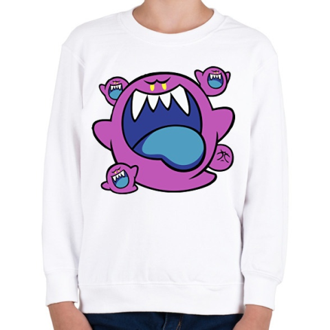 1 kép PRINTFASHION Kicsi lila szellem - Gyerek pulóver - Fehér