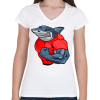 1 kép PRINTFASHION Kigyúrt cápa - Női V-nyakú póló - Fehér