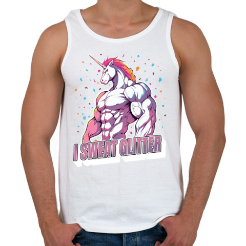 1 kép PRINTFASHION Kigyúrt unikornis - Férfi atléta - Fehér