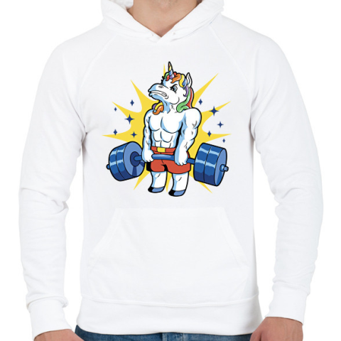1 kép PRINTFASHION Kigyúrt unikornis - Férfi kapucnis pulóver - Fehér