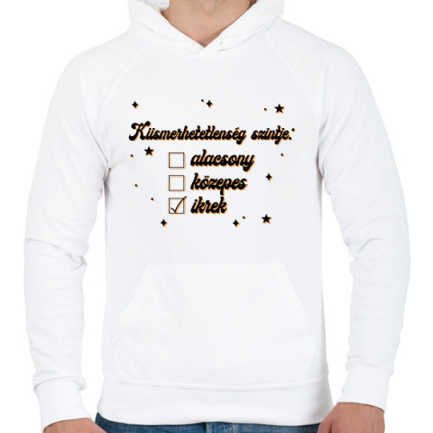1 kép PRINTFASHION Kiismerhetetlenség szintje - Férfi kapucnis pulóver - Fehér