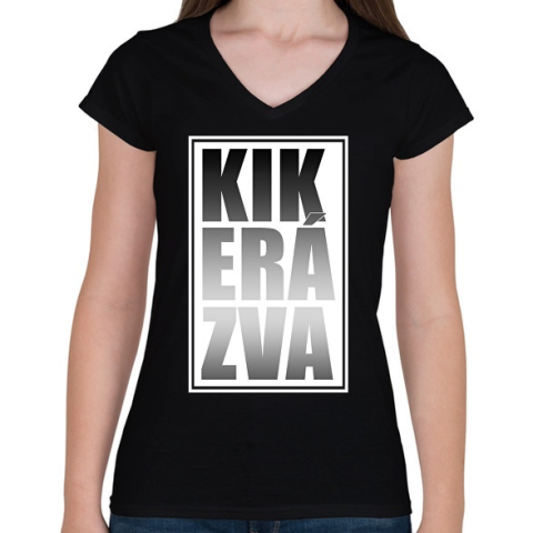 1 kép PRINTFASHION Kikerázva - Női V-nyakú póló - Fekete