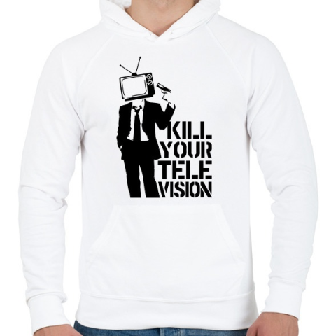 1 kép PRINTFASHION Kill your TV - Férfi kapucnis pulóver - Fehér