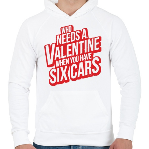 1 kép PRINTFASHION Kinek kell valentin ha van 6 autód! - Férfi kapucnis pulóver - Fehér