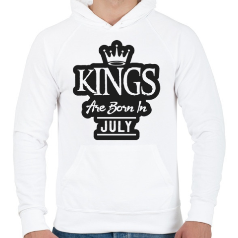 1 kép PRINTFASHION KINGS are born in July - fekete - Férfi kapucnis pulóver - Fehér