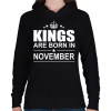 1 kép PRINTFASHION Kings are born in November - Női kapucnis pulóver - Fekete