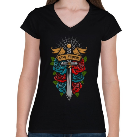 1 kép PRINTFASHION Királyi kard - Női V-nyakú póló - Fekete