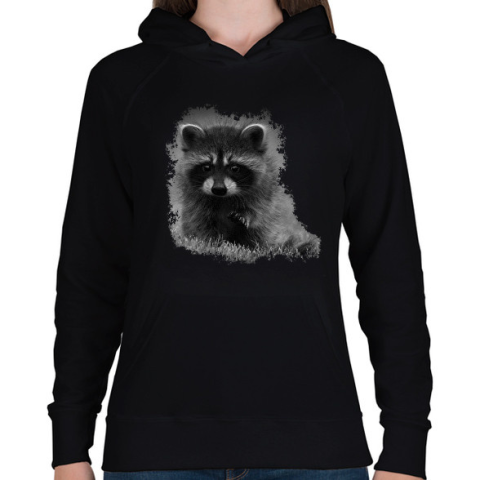 1 kép PRINTFASHION Kis mosómedve (fekete-fehér újság) - Női kapucnis pulóver - Fekete