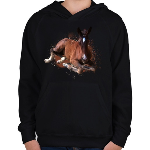 1 kép PRINTFASHION kiscsikó portré - Gyerek kapucnis pulóver - Fekete