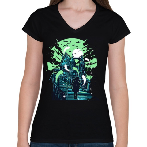 1 kép PRINTFASHION Kísértetház - Női V-nyakú póló - Fekete