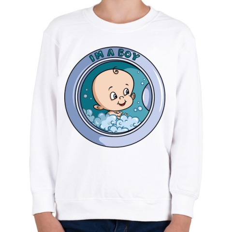1 kép PRINTFASHION Kisfiú a mosógépben - Gyerek pulóver - Fehér