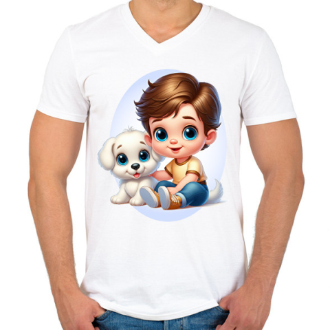 1 kép PRINTFASHION Kisfiú kiskutyával - Férfi V-nyakú póló - Fehér