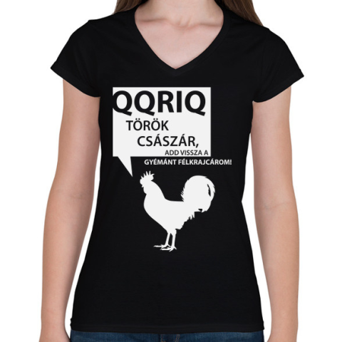 1 kép PRINTFASHION kiskakas-white - Női V-nyakú póló - Fekete