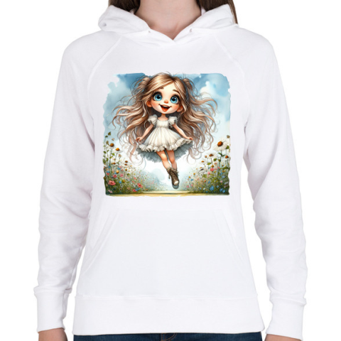 1 kép PRINTFASHION Kislány a tavaszi réten - Női kapucnis pulóver - Fehér