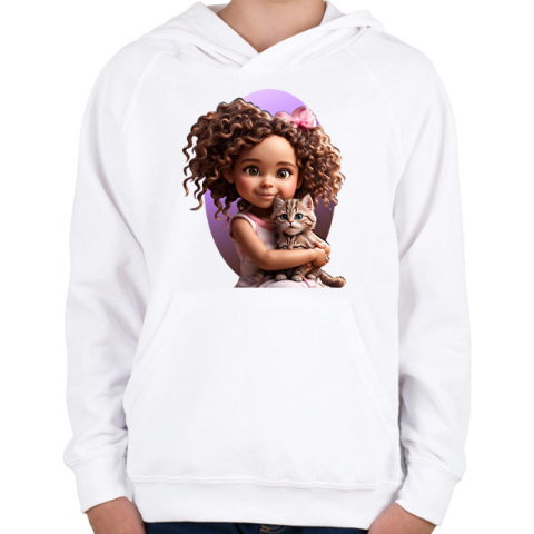1 kép PRINTFASHION Kislány cicával - Gyerek kapucnis pulóver - Fehér