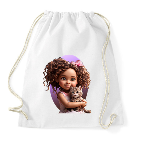 1 kép PRINTFASHION Kislány cicával - Sportzsák, Tornazsák - Fehér