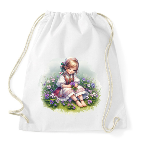 1 kép PRINTFASHION Kislány népviseletben - Sportzsák, Tornazsák - Fehér