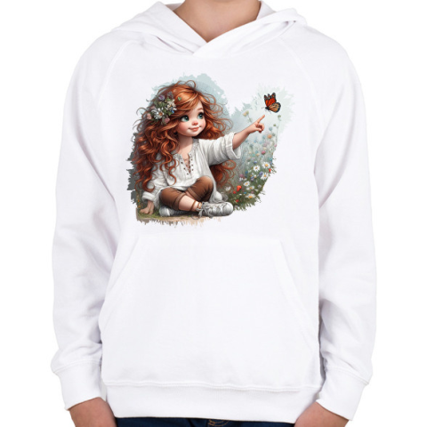 1 kép PRINTFASHION Kislány pillangóval - Gyerek kapucnis pulóver - Fehér