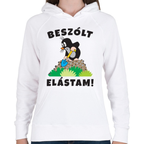 1 kép PRINTFASHION Kisvakond - Beszólt elástam! - Női kapucnis pulóver - Fehér