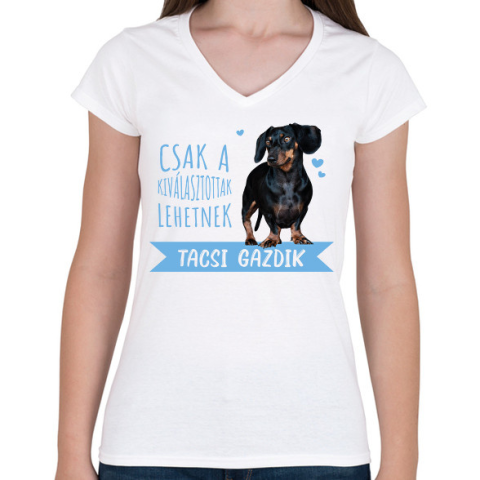1 kép PRINTFASHION Kiválasztott tacsi gazdi - Női V-nyakú póló - Fehér