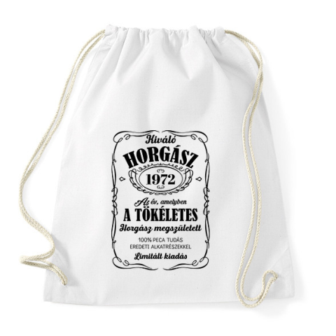 1 kép PRINTFASHION Kiváló horgász - Évszámmal (fekete) - Sportzsák, Tornazsák - Fehér