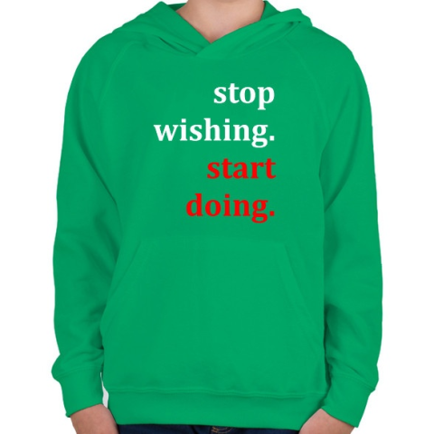 1 kép PRINTFASHION Kívánság helyett tegyél érte - Gyerek kapucnis pulóver - Zöld