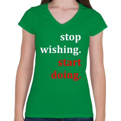 1 kép PRINTFASHION Kívánság helyett tegyél érte - Női V-nyakú póló - Zöld