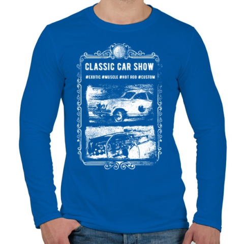 1 kép PRINTFASHION Klasszikus autók - Férfi hosszú ujjú póló - Királykék