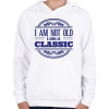 1 kép PRINTFASHION Klasszikus vagyok nem öreg - Gyerek kapucnis pulóver - Fehér