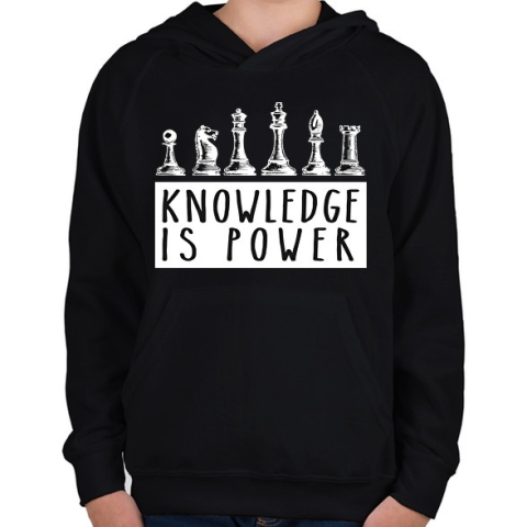 1 kép PRINTFASHION Knowledge is power - Gyerek kapucnis pulóver - Fekete