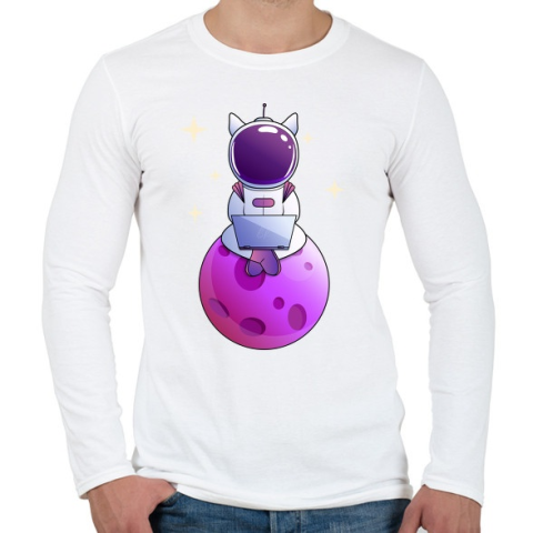 1 kép PRINTFASHION Kocka asztronauta lila - Férfi hosszú ujjú póló - Fehér