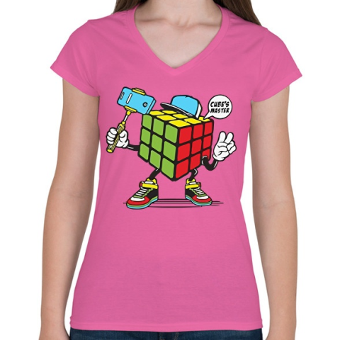 1 kép PRINTFASHION Kocka mester - Női V-nyakú póló - Rózsaszín