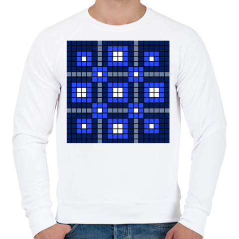 1 kép PRINTFASHION Kockás minta 05 - Férfi pulóver - Fehér