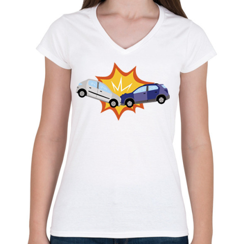 1 kép PRINTFASHION Kocsi ütközés - Női V-nyakú póló - Fehér