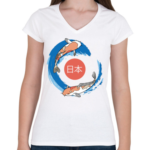 1 kép PRINTFASHION Koi ponty - Japán - Női V-nyakú póló - Fehér