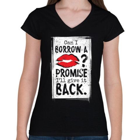 1 kép PRINTFASHION Kölcsön csók? - Női V-nyakú póló - Fekete