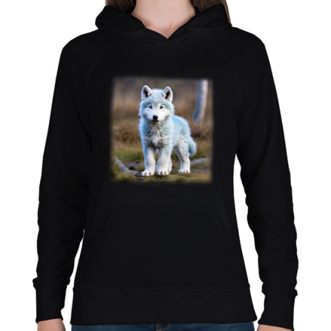1 kép PRINTFASHION kölyök farkas / husky - Női kapucnis pulóver - Fekete