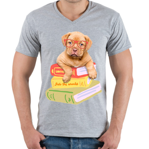 1 kép PRINTFASHION Kölyök masztiff szemüvegben könyvekkel - Férfi V-nyakú póló - Sport szürke